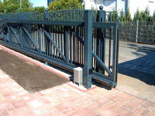 Freitragendes Aluminium-Schiebetor, 2-teiliger Aluminiumrahmen 50x40 mm, Aluminiumunterholm 125 x 100 mm