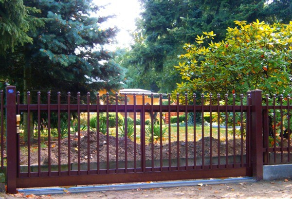 Aluminiumschiebetor auf Bodenlaufschiene, 2-teiliger Aluminiumrahmen 50x40 mm, Aluminiumunterholm 120 x 60 mm,